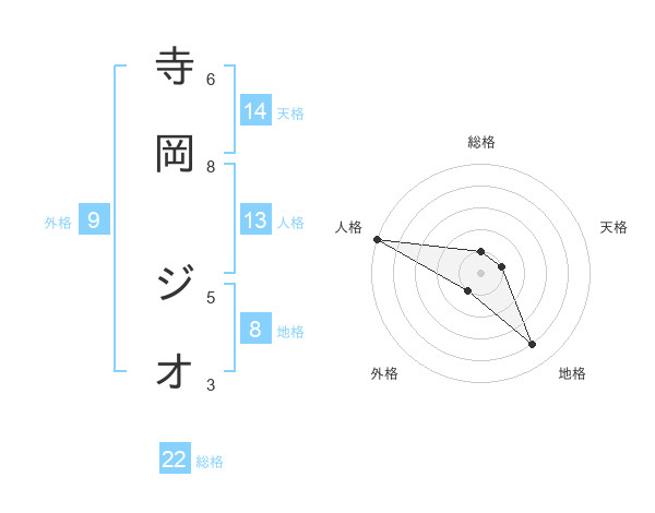 寺岡 ジオさんを姓名の画数から五運を鑑定