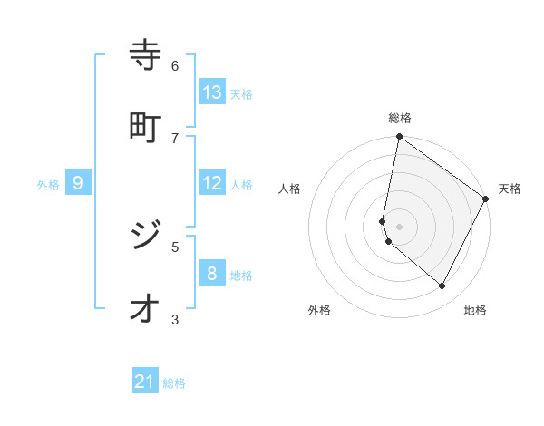 寺町 ジオさんの総格は21画の5点!