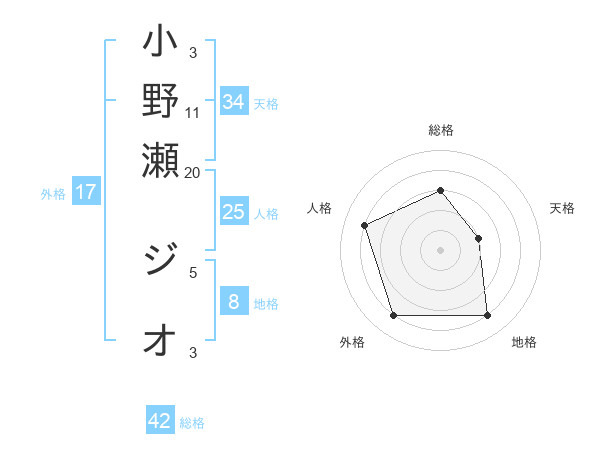 小野瀬 ジオさんの総格は42画の3点!