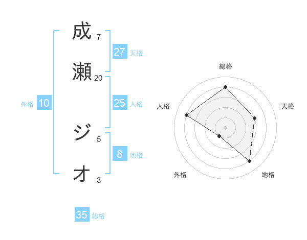 成瀬 ジオさんの総格は35画の4点!