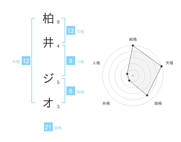 柏井 ジオさんの総格は21画の5点!