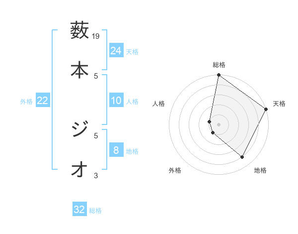 薮本 ジオさんを姓名の画数から五運を鑑定