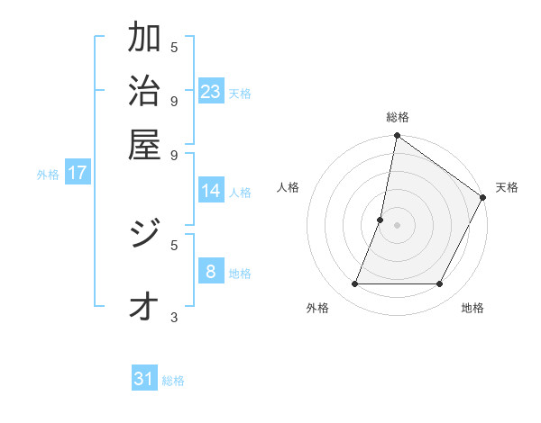 加治屋 ジオさんの天格は23画の5点