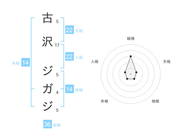 古沢 ジガジさんを姓名の画数から五運を鑑定