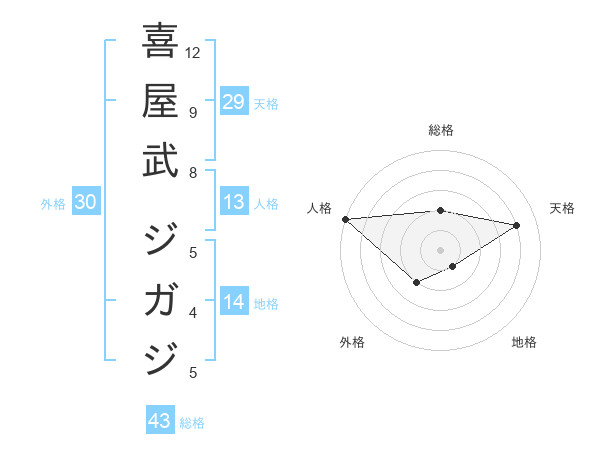 喜屋武 ジガジさんを姓名の画数から五運を鑑定