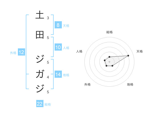 土田 ジガジさんを姓名の画数から五運を鑑定