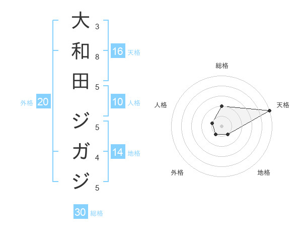 大和田 ジガジさんの天格は16画の5点!