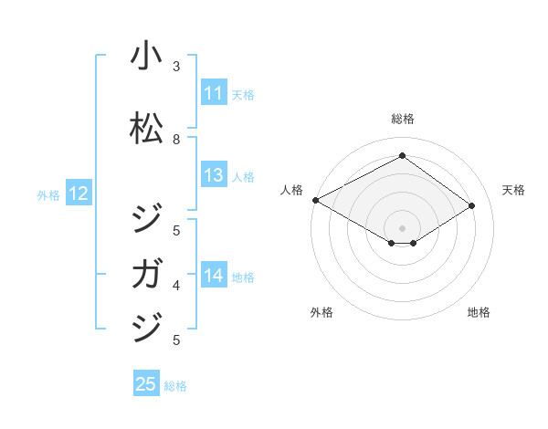 小松 ジガジさんを姓名の画数から五運を鑑定