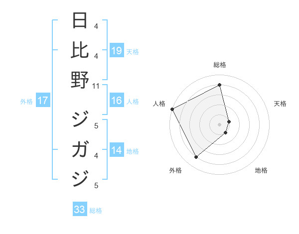 日比野 ジガジさんを姓名の画数から五運を鑑定