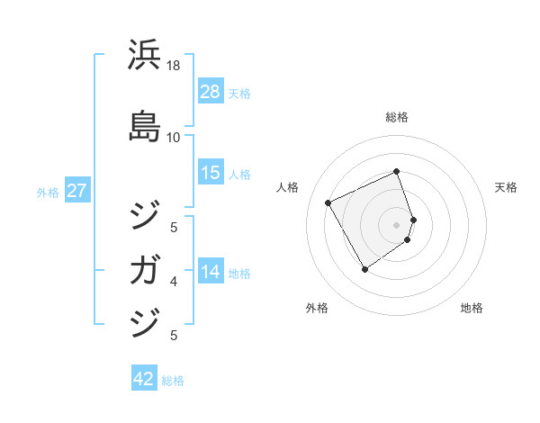 浜島 ジガジさんを姓名の画数から五運を鑑定