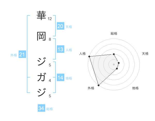華岡 ジガジさんを姓名の画数から五運を鑑定