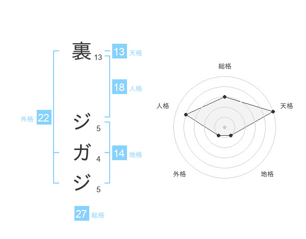 裏 ジガジさんの天格は13画の5点!
