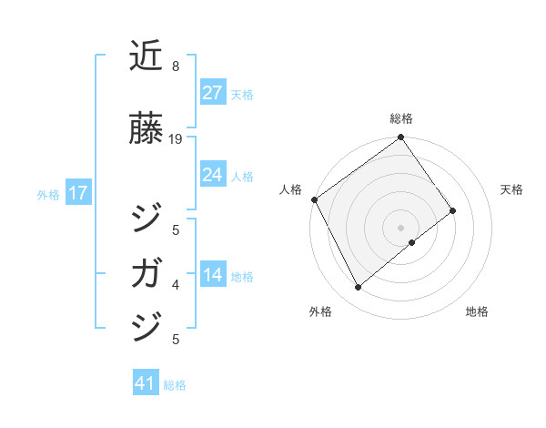 近藤 ジガジさんを姓名の画数から五運を鑑定