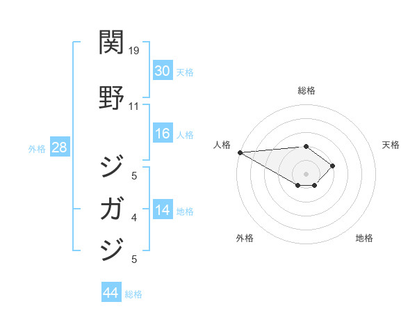 関野 ジガジさんを姓名の画数から五運を鑑定