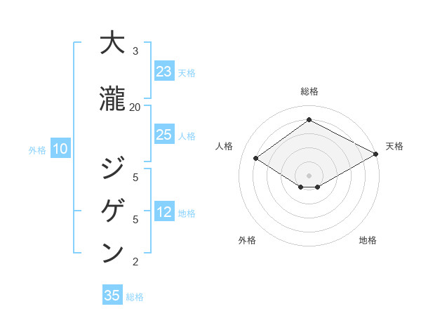 大瀧 ジゲンさんを姓名の画数から五運を鑑定