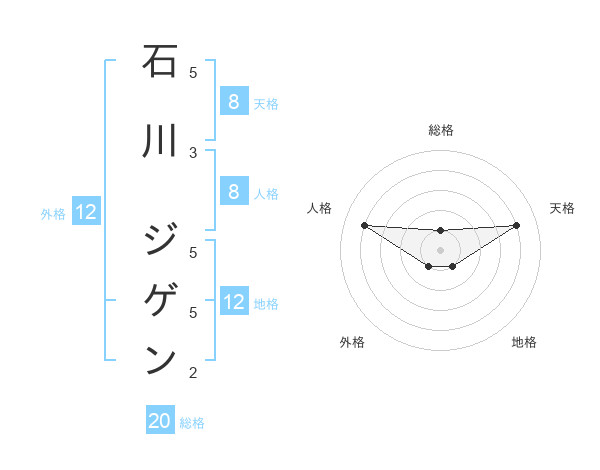石川 ジゲンさんの総格は20画の1点