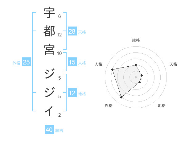 宇都宮 ジジイさんの総格は40画の2点!