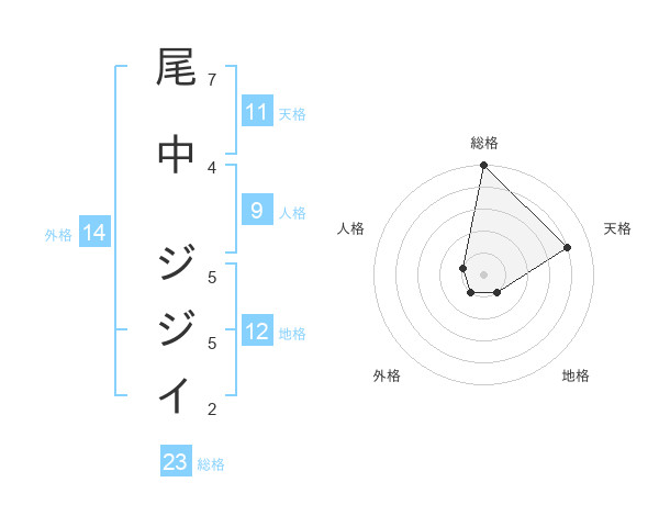 尾中 ジジイさんを姓名の画数から五運を鑑定