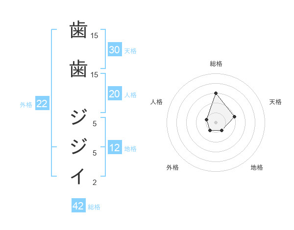 歯歯 ジジイさんの総格は42画の3点!