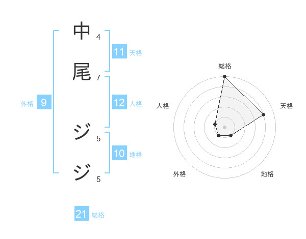中尾 ジジさんを姓名の画数から五運を鑑定