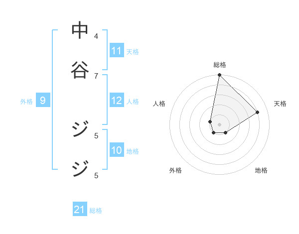 中谷 ジジさんの総格は21画の5点!
