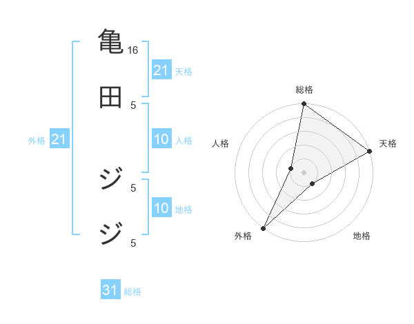 亀田 ジジさんを姓名の画数から五運を鑑定