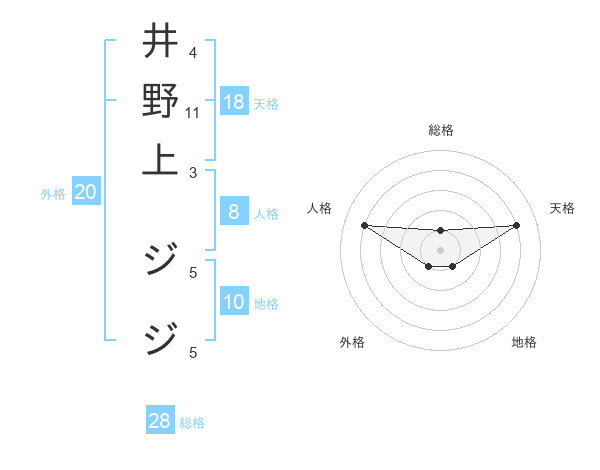 井野上 ジジさんを姓名の画数から五運を鑑定