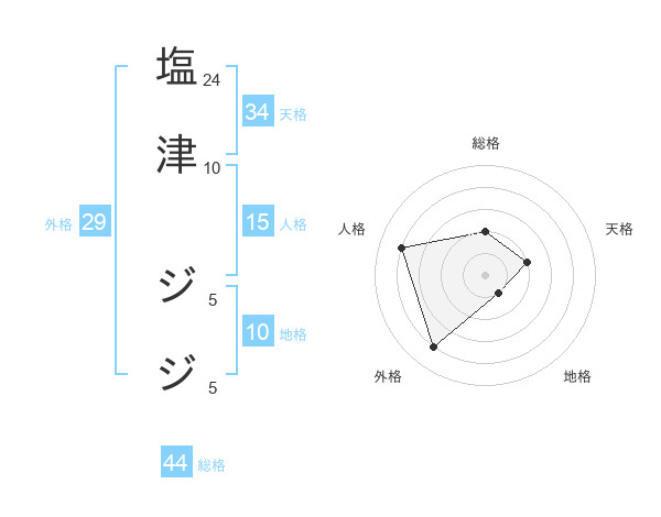 塩津 ジジさんの総格は44画の2点!
