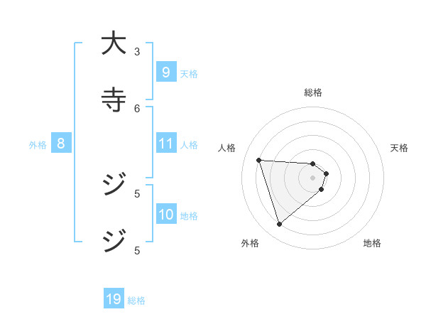 大寺 ジジさんを姓名の画数から五運を鑑定