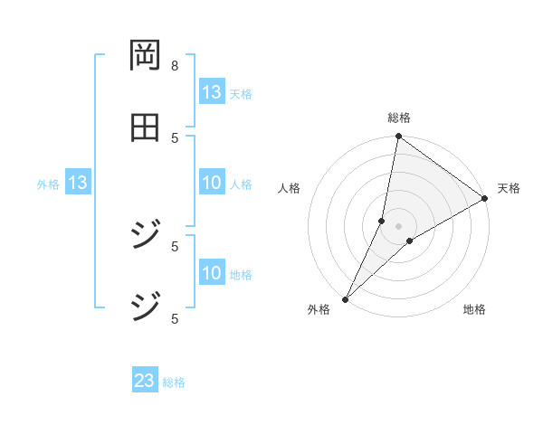 岡田 ジジさんの天格は13画の5点!