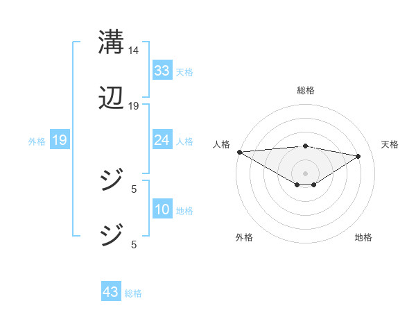 溝辺 ジジさんの総格は43画の2点!