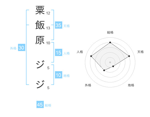 粟飯原 ジジさんを姓名の画数から五運を鑑定