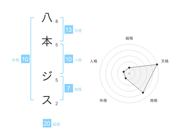 八本 ジスさんの総格は20画の1点!