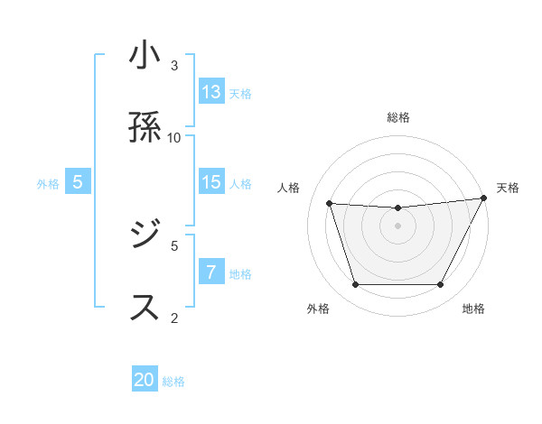 小孫 ジスさんを姓名の画数から五運を鑑定