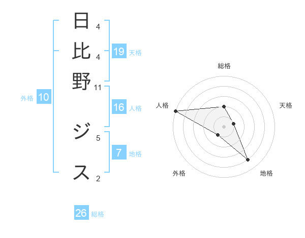 日比野 ジスさんを姓名の画数から五運を鑑定