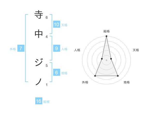 寺中 ジノさんを姓名の画数から五運を鑑定
