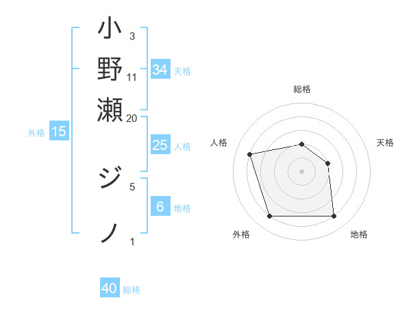 小野瀬 ジノさんを姓名の画数から五運を鑑定