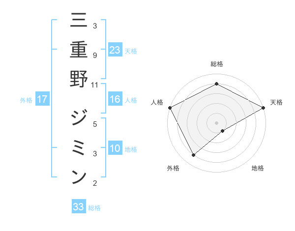 三重野 ジミンさんを姓名の画数から五運を鑑定