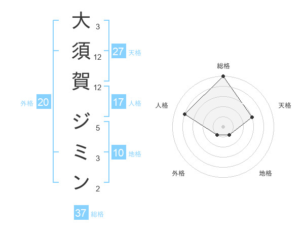 大須賀 ジミンさんの総格は37画の5点!