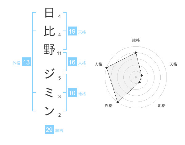 日比野 ジミンさんを姓名の画数から五運を鑑定