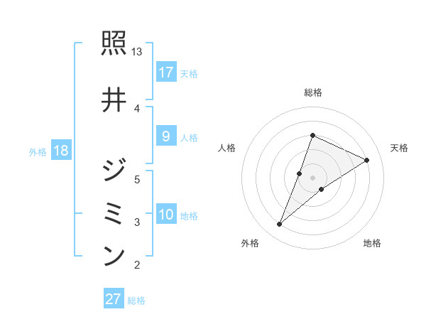 照井 ジミンさんの天格は17画の4点