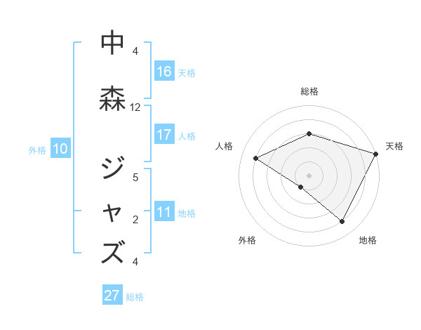 中森 ジャズさんを姓名の画数から五運を鑑定