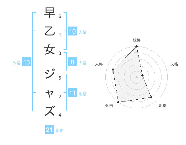早乙女 ジャズさんの外格は13画の5点!