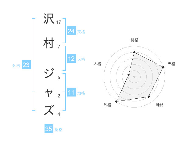 沢村 ジャズさんの総格は35画の4点