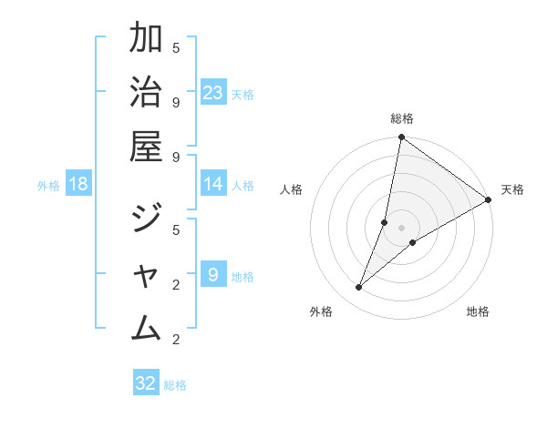 加治屋 ジャムさんの天格は23画の5点
