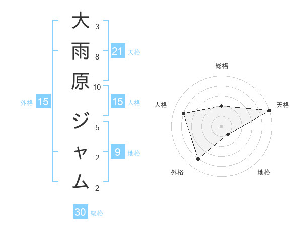 大雨原 ジャムさんを姓名の画数から五運を鑑定