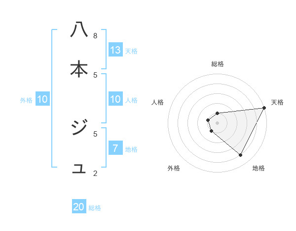 八本 ジュさんの天格は13画の5点!