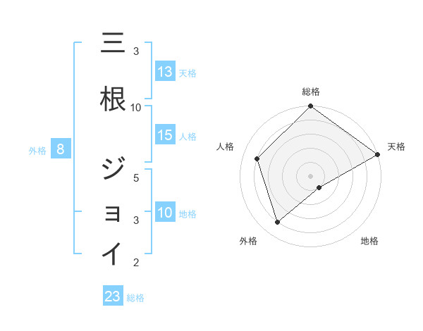 三根 ジョイさんを姓名の画数から五運を鑑定