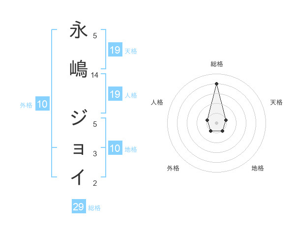 永嶋 ジョイさんを姓名の画数から五運を鑑定
