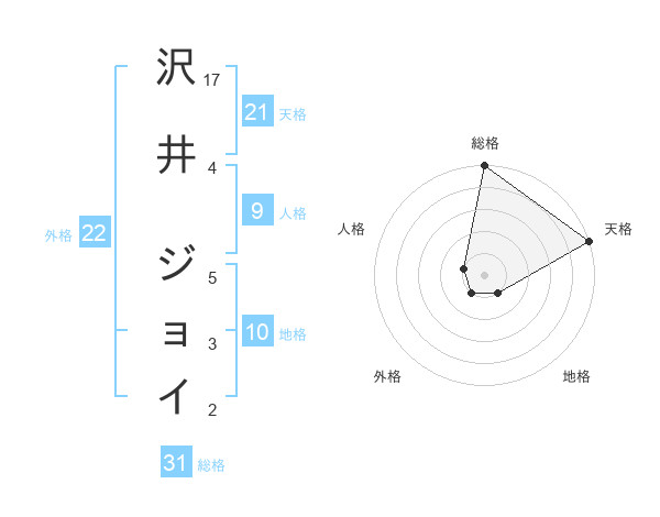 沢井 ジョイさんを姓名の画数から五運を鑑定